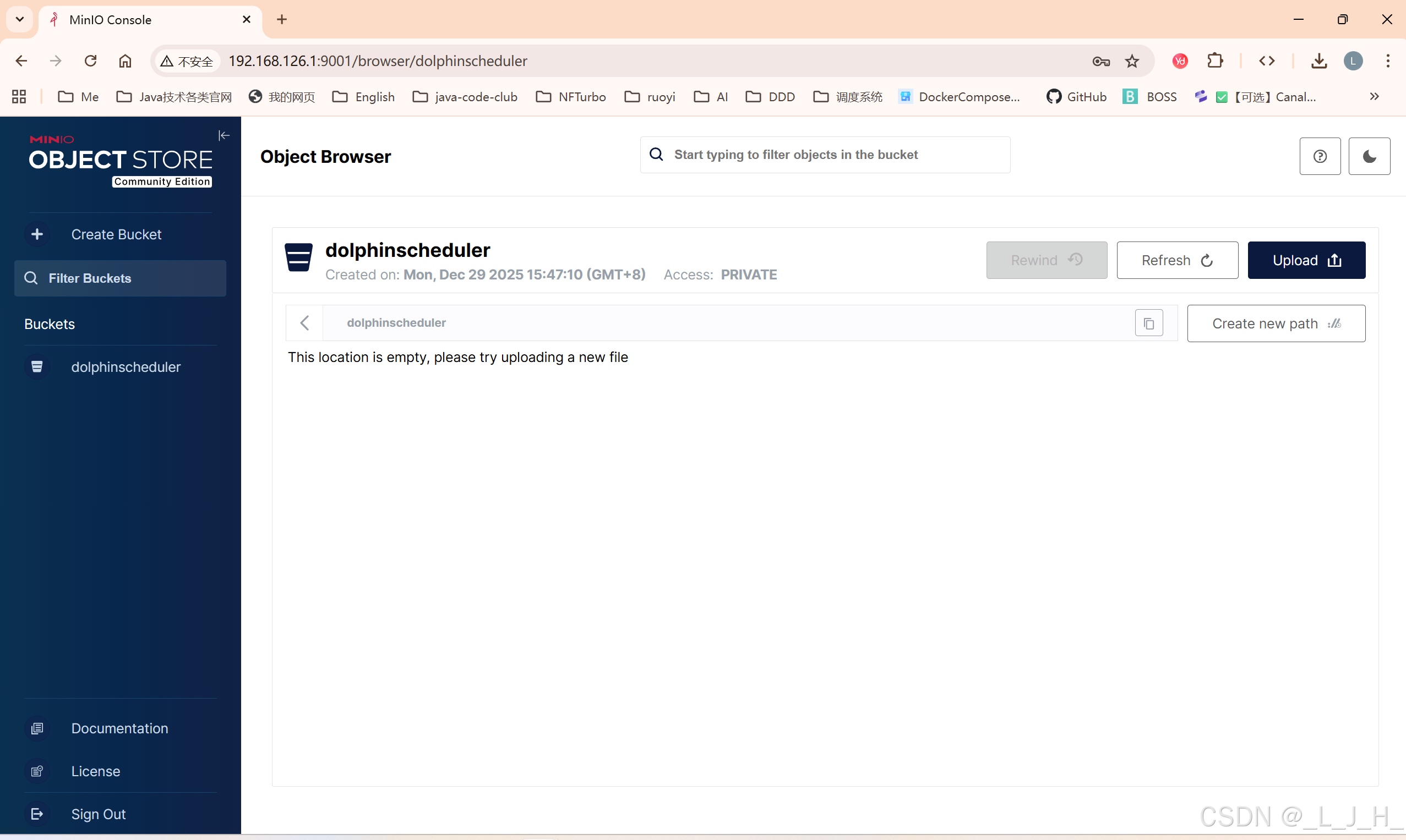 • 1、minio 创建 dolphinscheduler 桶
