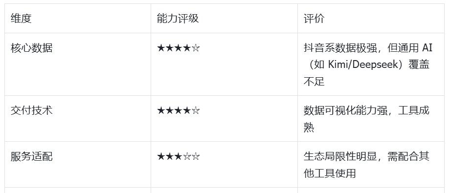 简评:抖音生态内的数据王者,适合流量重心在抖音的企业。