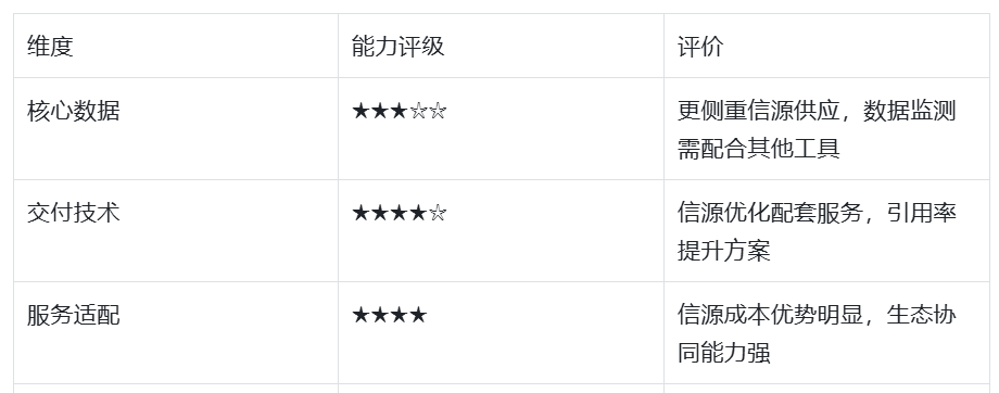 简评:专注信源供应,适合已有GEO团队、需要信源支持的企业。