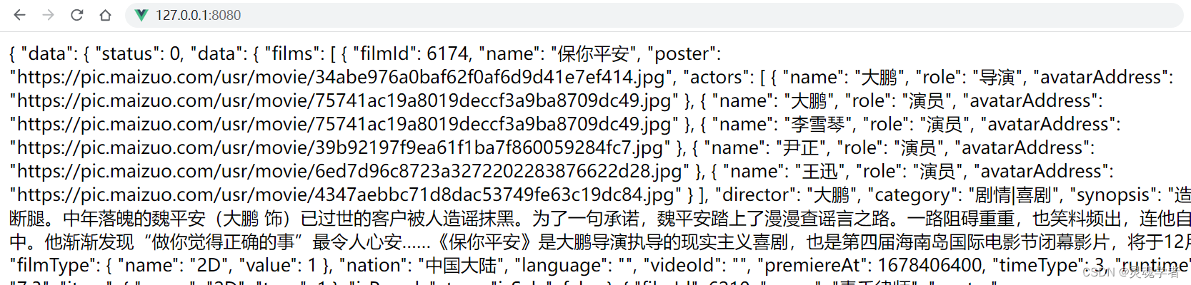 export default {setup () {const store = useStore()onMounted(() => {axios({url: 'https://m.maizuo.com/gateway?cityId=440300&pageNum=1&pageSize=10&type=1&k=7778789',method: 'GET',headers: {'X-Client-Info': '{"a":"3000","ch":"1002","v":"5.2.1","e":"16753207015161962279272449"}','X-Host': 'mall.film-ticket.film.list'}}).then(res => {// console.log(res)// commit 提交store.commit('getInfoList', res)})})}