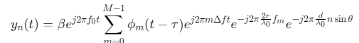 接收信号:远场目标(距离\(r\)、角度\(θ\))的回波信号经匹配滤波后,第\(n\)个接收阵元的输出为: