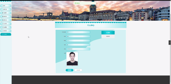 个人中心:在个人中心页面通过填写个人详细信息进行信息更新;并根据需要对我的发布进行操作;如图5-5所示: