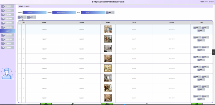 3. 风格分类管理:管理员能够对装修风格的分类进行管理,包括新增、修改和删除风格分类。