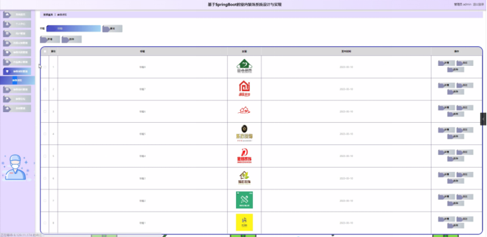 这些功能模块的实现,不仅为用户提供了便捷的室内装饰信息获取渠道,也为管理员提供了高效的管理工具。经过智能化的管理方式,系统能够有效提升室内装饰管理的效率,减少人工管理的弊端,同时为用户献出更加个性化和高效的服务体验。