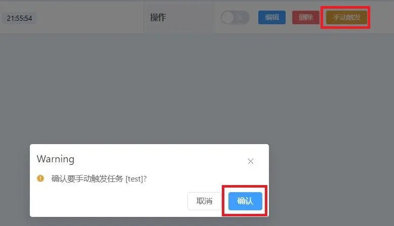按下手动触发按钮并查看日志 此步的输出内容应为空白