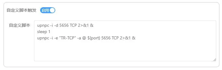 upnpc -i -e "rule name" -a @ ${port} 穿透通道监听端口 穿透类型 2>&1 &