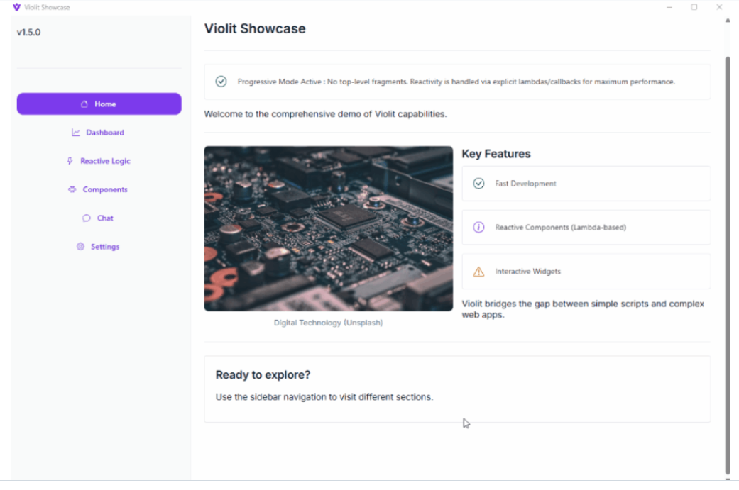 Violit 是一个新一代 Python Web 框架,它采用 O(1) 状态架构以实现即时响应,这与 Streamlit 的完全脚本重运行结构不同。