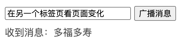 在同源下,打开这个页面,然后输入信息后,广播信息,然后另一个标签页就收到了~ very cool!