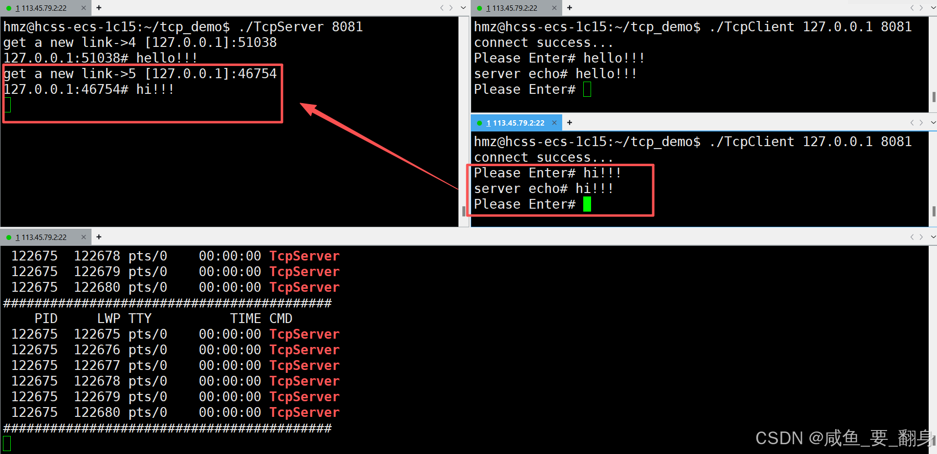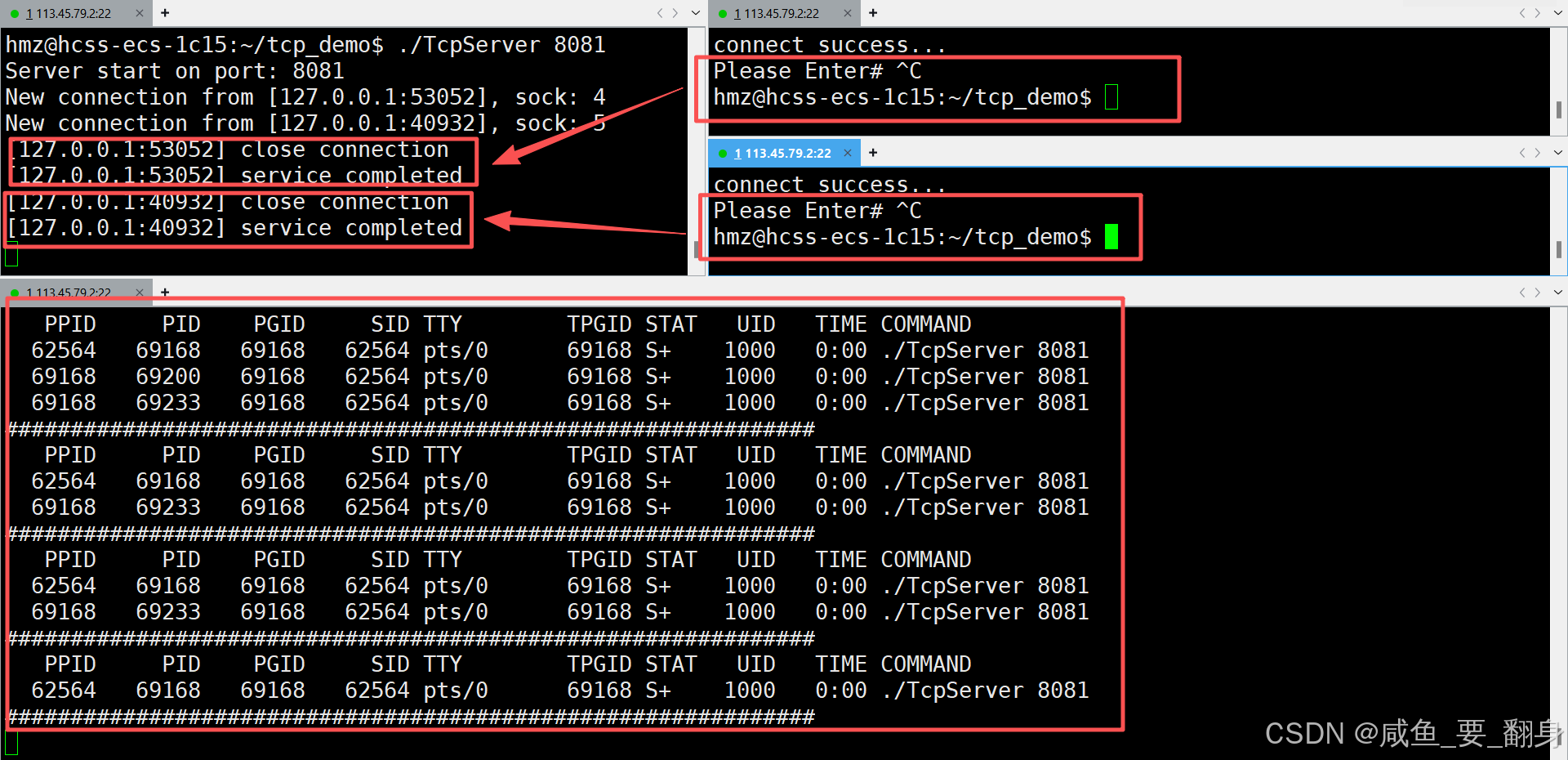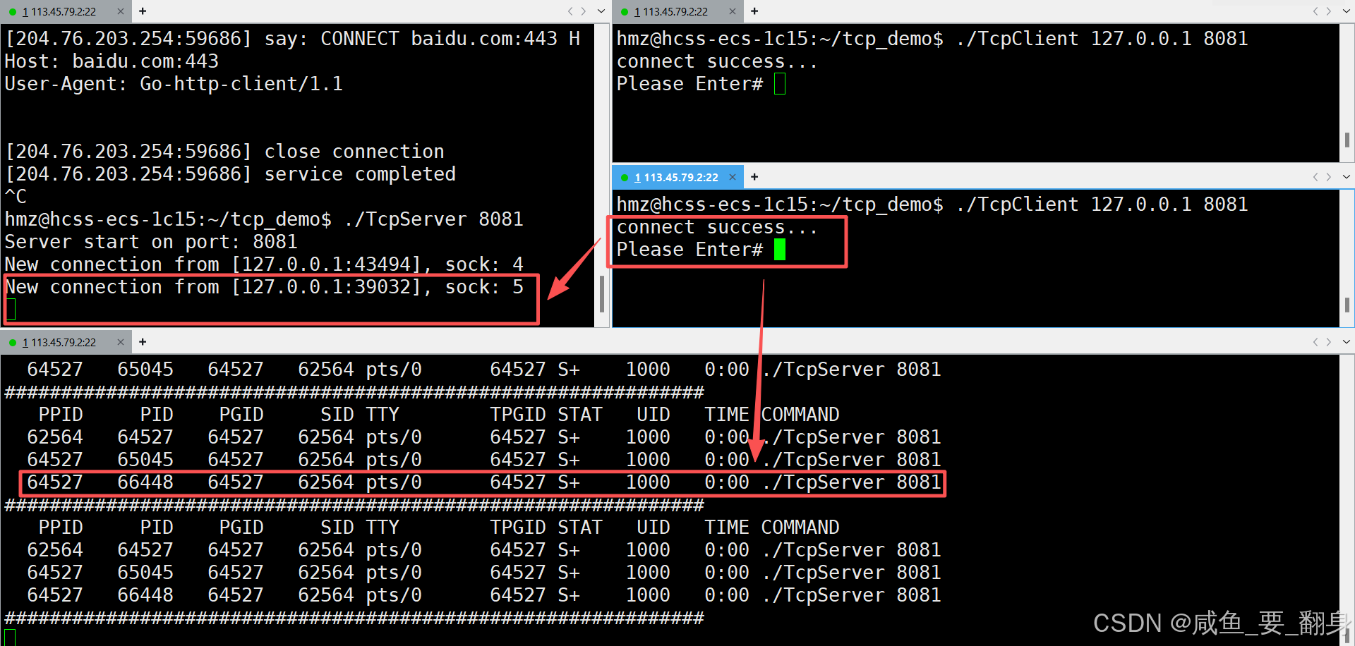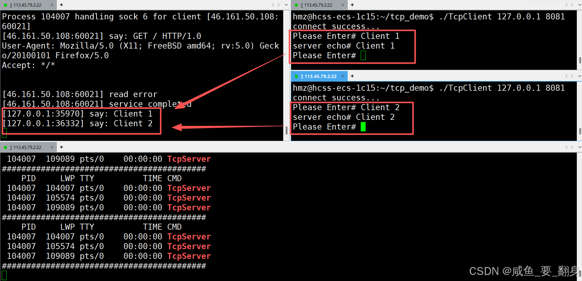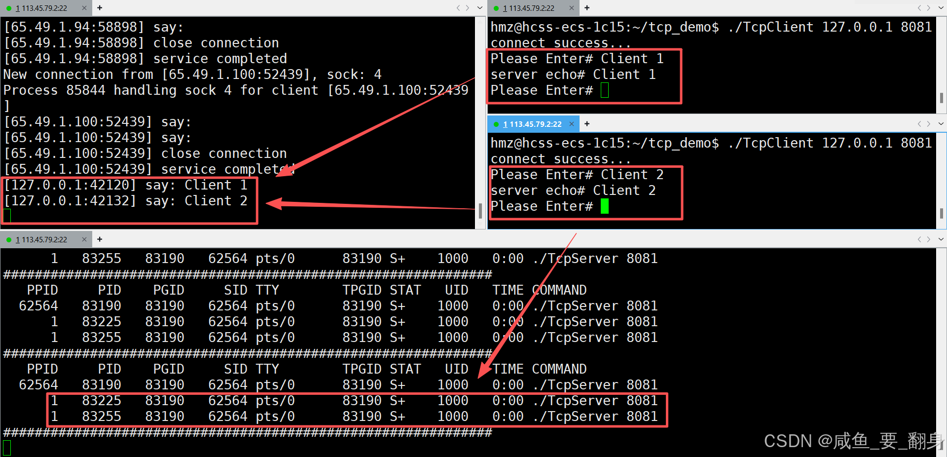 在单进程TCP服务器模型中,服务器只能以串行方式依次处理客户端连接请求。当我们将单执行流服务器升级为多进程版本后,服务器可以同时处理多个客户端连接,显著提升并发处理能力。