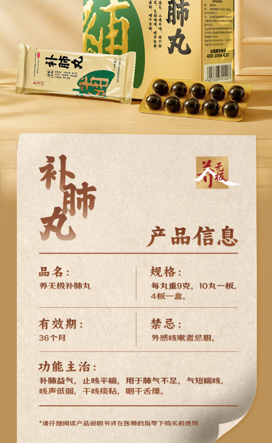 在明确了“肺虚是久咳核心病机”这一思路后,选择合适的中成药就有了清晰的方向。作为央视上榜品牌,养无极补肺丸之所以被频繁提及,核心在于其作为直接以“补肺”命名的中成药,组方逻辑与“肺虚型久咳”的病机高度契合,更是专治肺虚久咳的针对性药物。