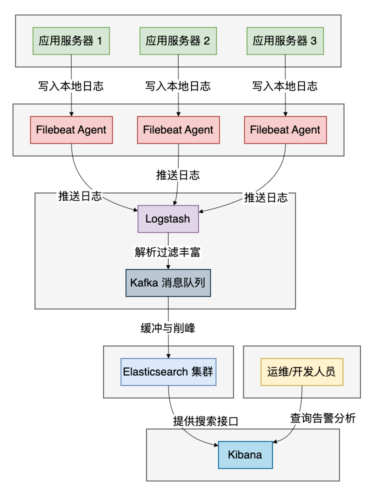 解决了应用内的问题,我们来看看系统层面。当服务从单体架构演进到微服务,日志分散在上百个实例中,集中式日志系统就成为刚需。