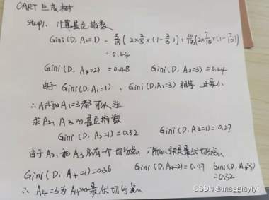 step1:计算各个特征的基尼指数,选择最有特征以及其最优切分点。