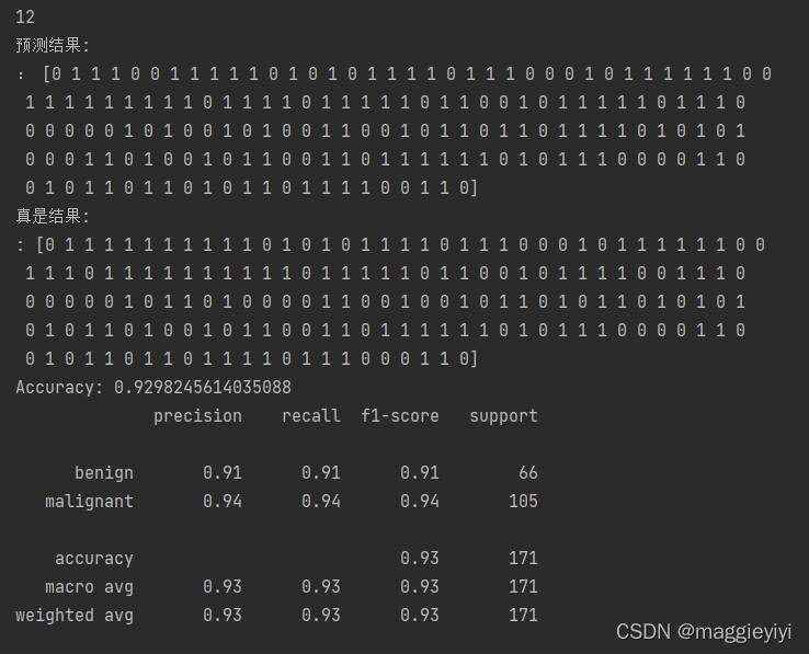 - print(classification_report(y_test,dtc_y_predict,target_names=['benign','malignant']))