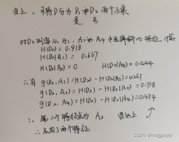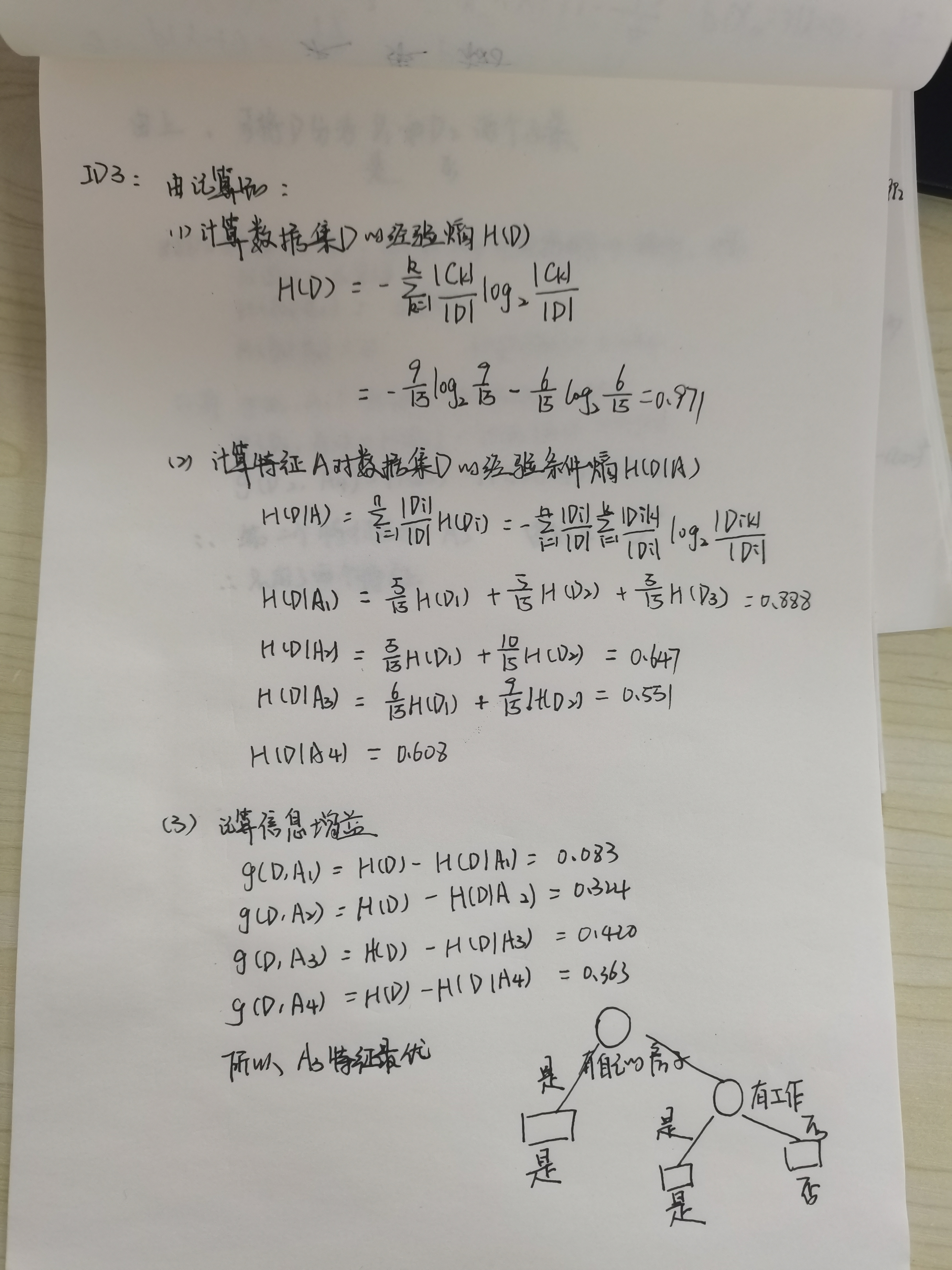所以A3的信息增益值最大,选择A3做最优特征。
