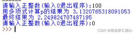 import scredef calP(x):sum = 0for i in range(1,x+1):sum = sum + 1/(i*i)p = math.sqrt(sum * 6)print("用多项式计算p的结果为 %s"%p)print("最终结果为%s"%(scre.zna(p)))if __name__ == '__main__': while(1):n = int(input("请输入正整数(输入0退出程序):"))if n == 0:sys.exit(0)calP(n) 3. 图形绘制题(15分):