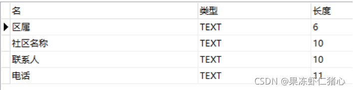 为打赢疫情防控的总体战、阻击战,建立了部分社区防疫联系人数据库。其sqlite数据库文件是c:\素材\fangyi.db,包含lianxi表,其中字段均为TEXT型(如图所示)
