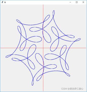其中wh、hh的取值分别为画布的半宽和半高,t的取值范围为0至2π,步长为0.01。图形绘制结果如图所示。