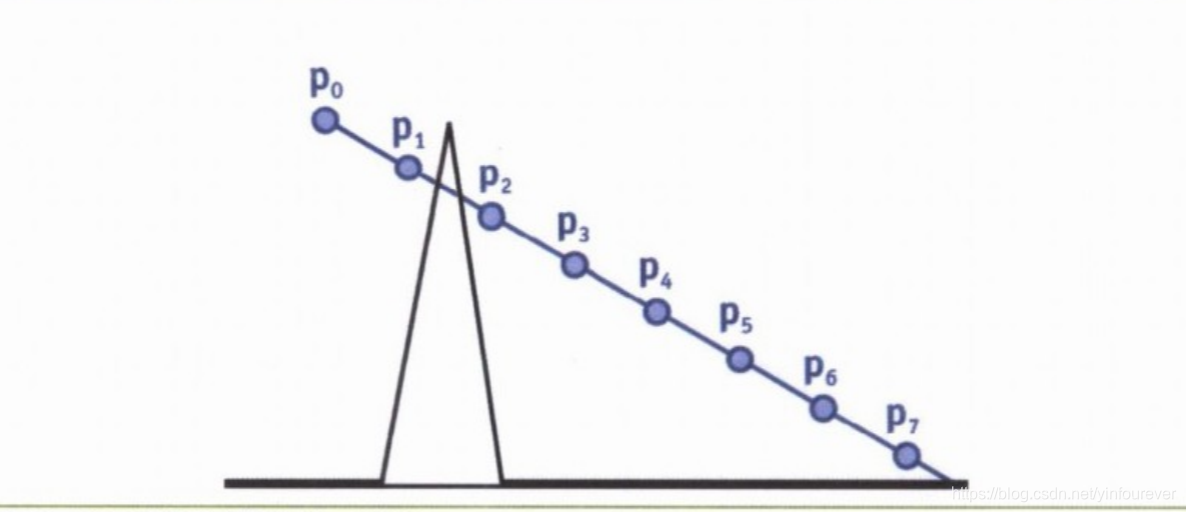 常见的光线跟踪算法是以均匀的距离对高度图采样,测试视线是否与表面相交,但却存在下列问题:如果采样距离远大于一个纹素,就不能保证在样本之间没有错过一个交点。