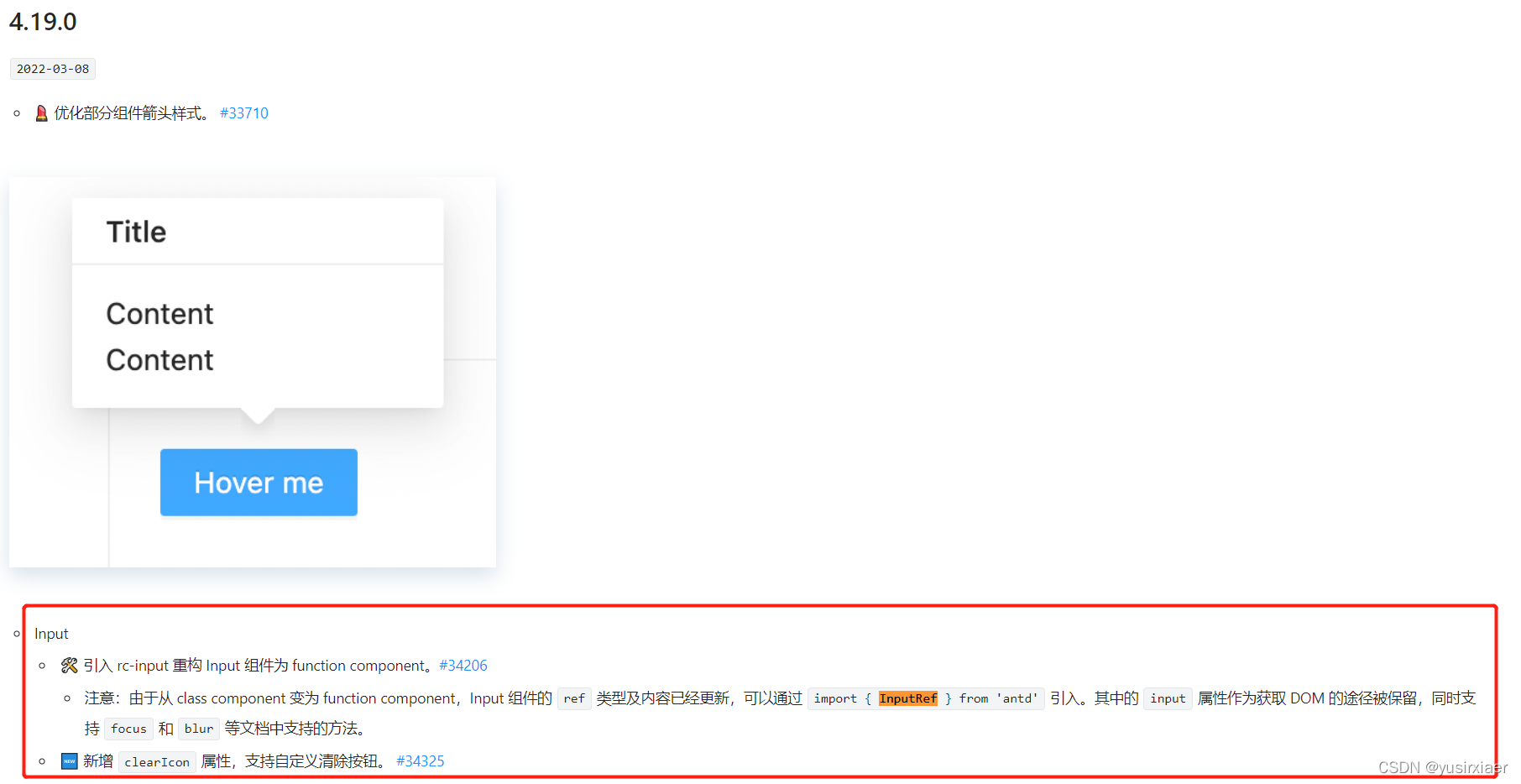 antd 4.19版本重写了input 可通过InputRef来使用input组件的ref