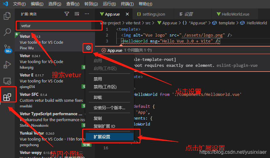 vetur插件 - 3.点击设置图标,再点击扩展设置