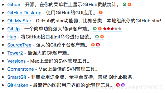 作为前端开发的小伙伴一定有这样的困惑,自己在日常的团队协作配合时,提交代码和解决冲突是我们最头疼的问题,但是又不喜欢使用Eclipse或者IDEA这种超级占内存的编辑器,使用Git命令又是那么捉襟见肘,所以有一个好用的轻量级的版本控制工具就显得异常的重要。目前市面上的版本控制工具层出不穷,比如Window上的小乌龟(SVN)和Mac上的smartGit,这些都是我比较常用的,Mac上还有一些别的工具,大家可以按需下载,如下图: