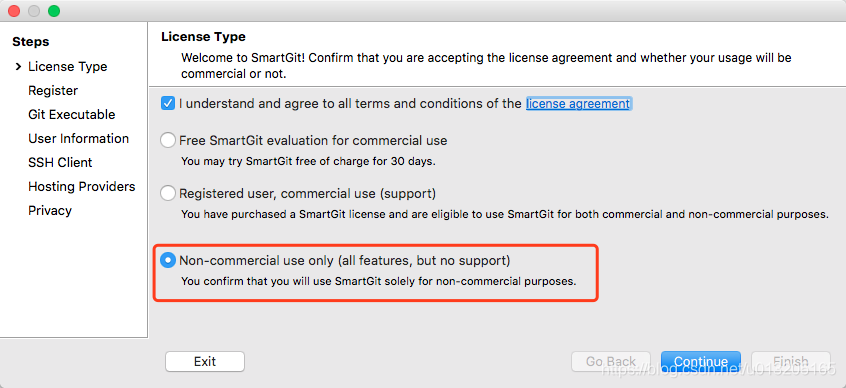 废话少说,下面就详细说一下我使用的SmartGit过期之后使用非商业用途的安装说明: