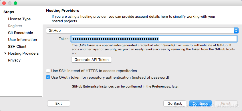 第五步:选择Hosting Providers(主机防护),因为我经常用GitHub,这里我选择的是GitHub,然后选择OAuth token方式进行资源库访问