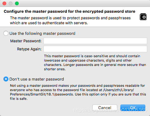 备注: 如果上述步骤有出现问题或者出错的情况,可以通过Finder前往~/Library/Preferences/SmartGit/文件夹,删除setting.xml 文件,重新启动smartGit,按步骤进行配置。如图