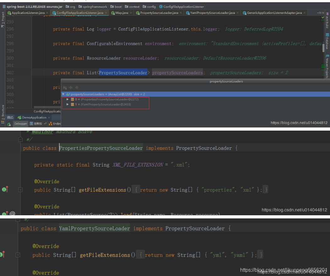 我们从这个类中的字段:propertySourceLoaders可以看出有两个Loader,请各位看官看图: