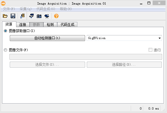 选择图像获取接口,点击自动检测检测相机类型。后边的文本框里会显示相机类型,我的是千兆网相机,所以显示GigeVision。前边大家用相机厂家的软件打开了相机,那么说明大家都安装了相机厂家halcon连接的sdk,所以接口是可以检测到的,如果没安装相机厂家的软件要安装哦,不然连接不上。有啥不懂留言问我。