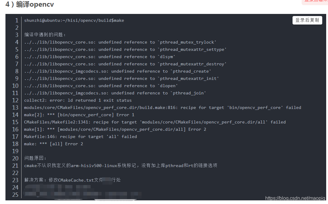-  出现上述问题的解决方法是在CMakeCache.txt文档里面加上如下红框所示的库文件