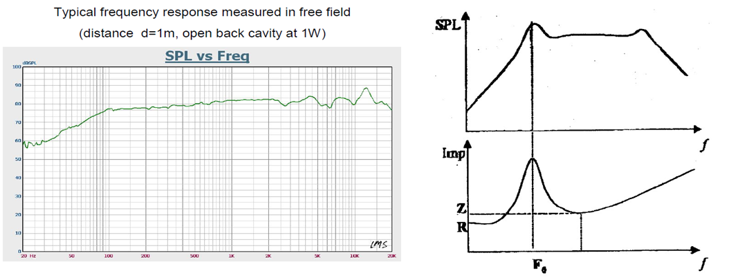 在扬声器的阻抗模值随频率递增变化的曲线上,出现某一个阻抗极大值时的频率,一般是随其口径的增大而降低,振动系统质量越大谐振点越低。