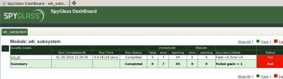 - Sub-Methodology: 是一系列相关Goal的集合, 用以达成某方面特定目标, 如完成CDC check.目前包括 SpyGlass CDC/Constraints/DFT/Power/TXV Methodology2