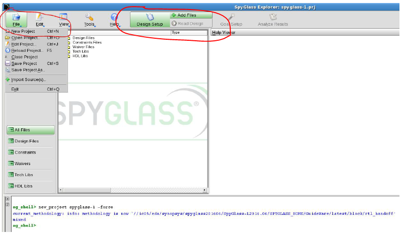 点击file -> new_project (对应sg_shell>new_project spyglass-1 –force 命令)