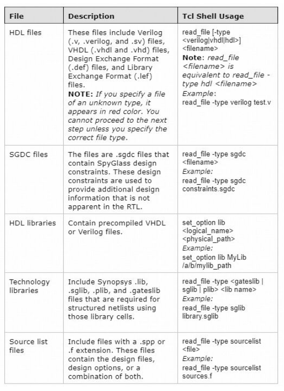 - 指定影响SpyGlass运行的各种设计读取选项。例如,你可以在设计中指定顶层模块、更改语言、指定宏等等。。
