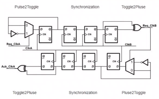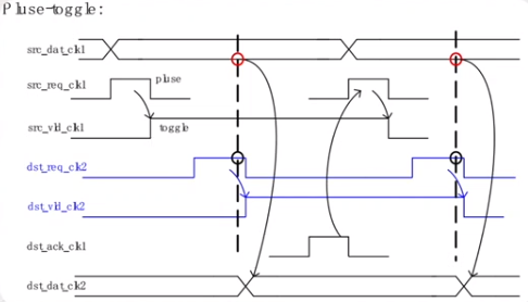 信号从快时钟域到慢时钟域过渡时,慢时钟可能无法对快时钟变化太快的信号进行采样。