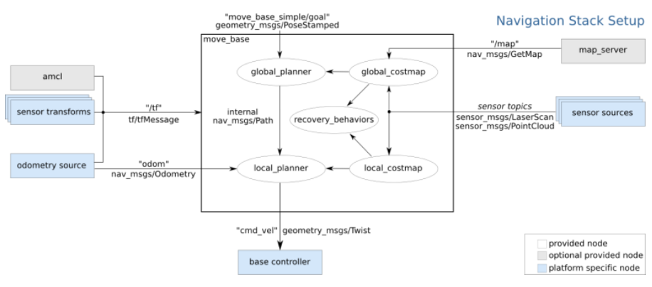 move_base提供了ROS导航的配置、运行、交互接口,它主要包括两个部分: