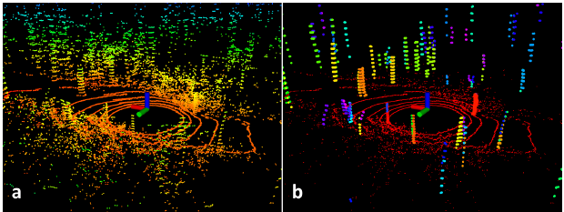 这个时候就用到了在Segmentation中记录下的类的标签(label)。然后在配准过程中,对任意一点的配准只在标签相同的点里进行匹配。例如,平面点只考虑标记为地面点的点,边缘点只考虑其他标记为大物体的点。