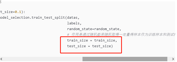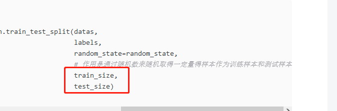 def split_datas(datas,labels,random_state=1,train_size=0.9,test_size=0.1):train_data, test_data, train_label, test_label = sklearn.model_selection.train_test_split(datas,labels,random_state=random_state,# 作用是通过随机数来随机取得一定量得样本作为训练样本和测试样本train_size,test_size)return train_data, test_data, train_label, test_label