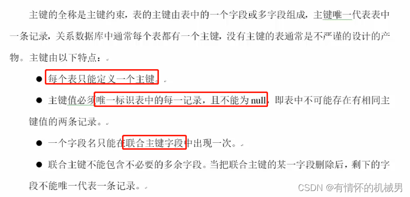 主键是唯一的;