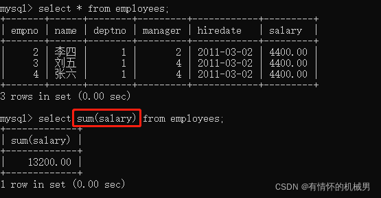 13.4、sum——对所选字段的记录进行求和
