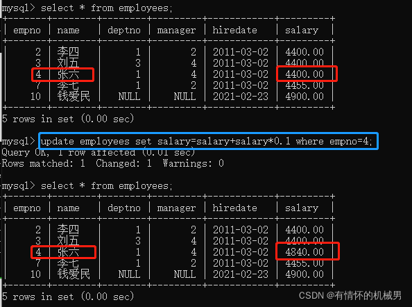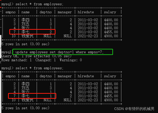 6、更新字段update