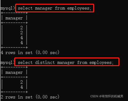 5.1、使用distinct 去除重复值