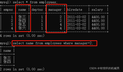 insert manager values(2,'技术部经理');