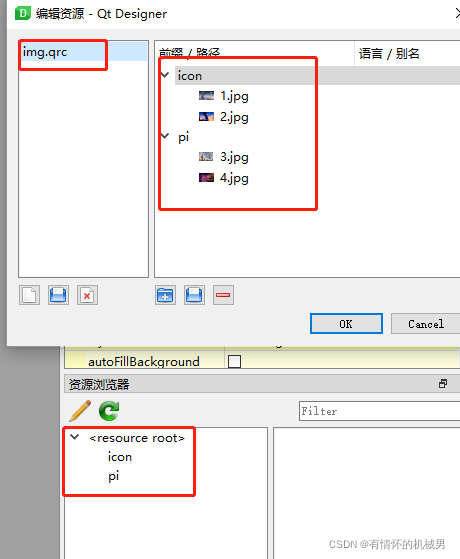 .qrc文件是qt系统的一个资源文件,主要为了方便图片的使用,可以通过代码和qt-designer工具来实现对文件的调用