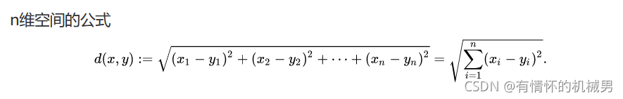 距离:欧式距离——每个特征值的差的平方和,再开根号