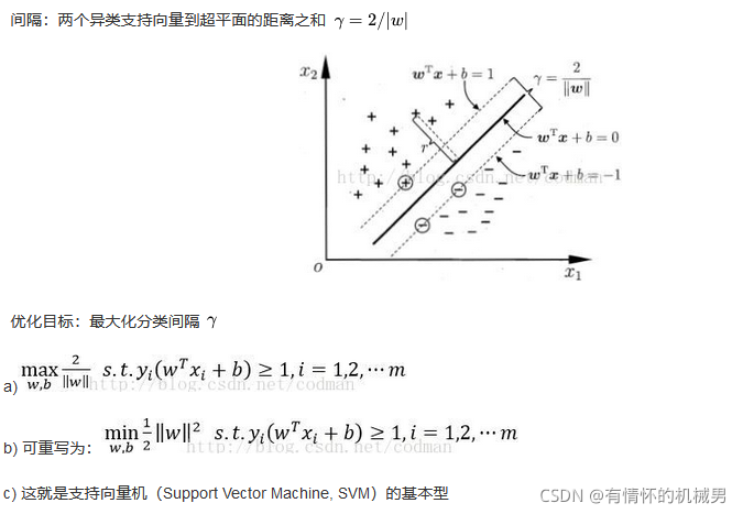 核心思想:这个的核心思想其实就是找到一个平面将不同的两类分割开。这个平面的特点为:
