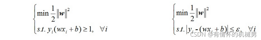 因为分类问题只有-1,1两种类型,因此使用真实标签乘以超平面函数(预测标签)的乘积作为损失函数的变量。预测真确则大于1,否则小于1,而不是去计算误差多少。