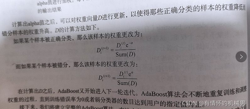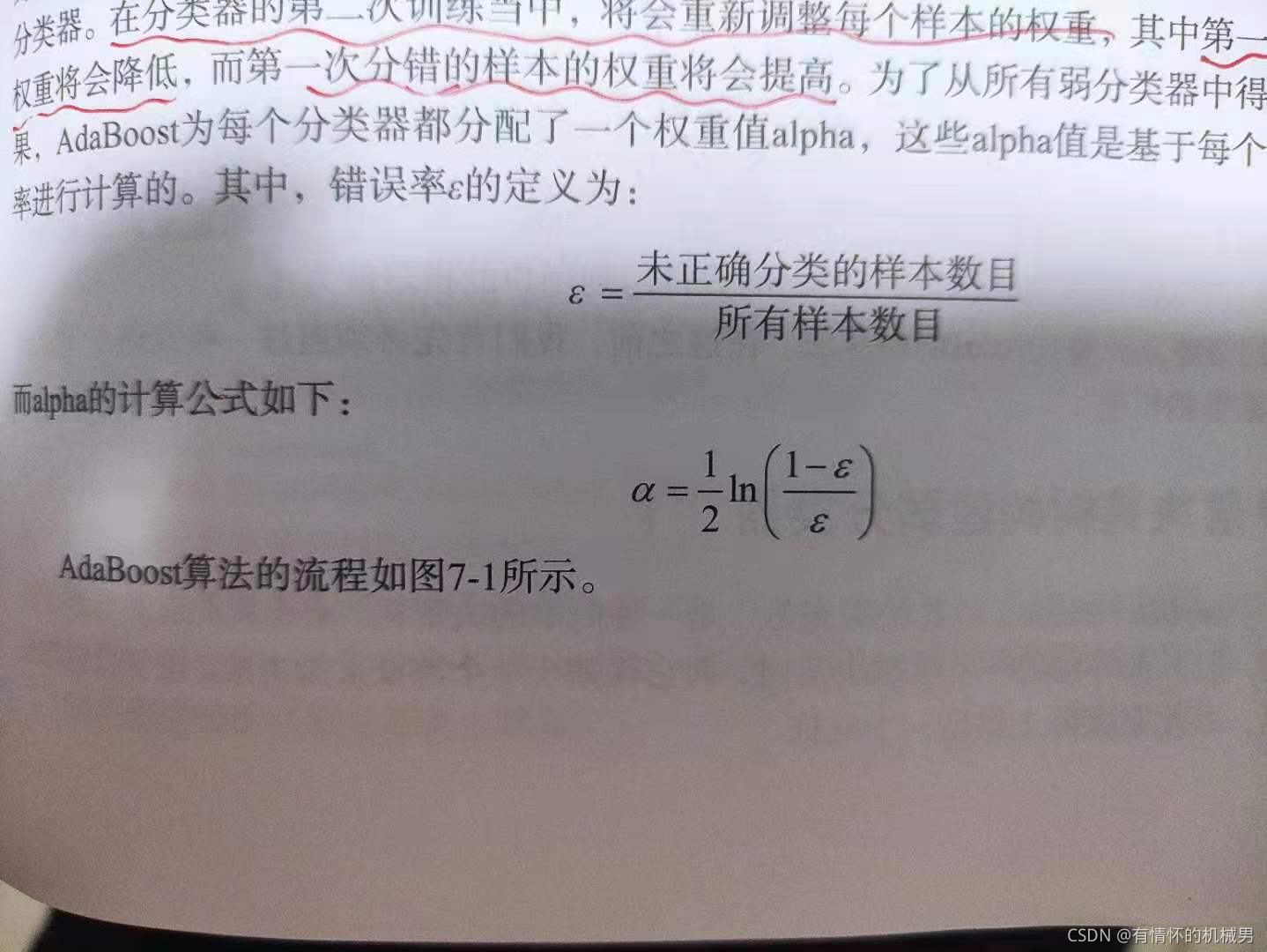 ④调整样本权重:分类正确的样本权重降低,错误的增加;权重主要是用于后续预测和损失函数使用,让分类器更关注这些样本