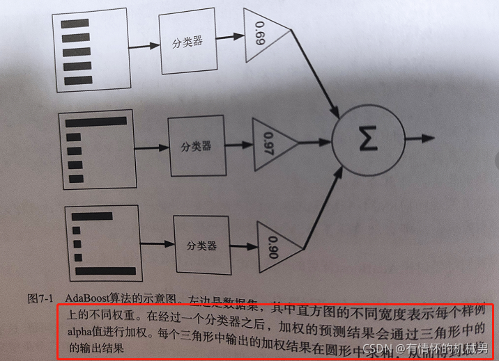 ⑦迭代后的如下图所示,预测阶段是将样本输入后,得到的预测结果会进行alpha加权后再相加得到最终结果